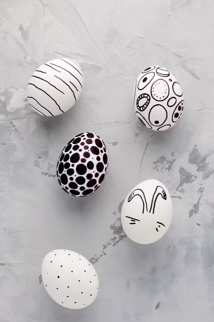 Rajzolj különböző mintájú húsvéti tojásokat közvetlenül az ablakra. Lehet pöttyös, csíkos, geometrikus. Jól működik a fekete kontúr, egy visszafogott pasztell színnel nagyon elegáns.
